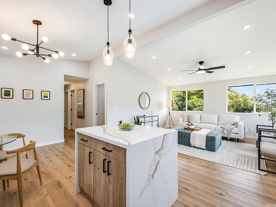 Stunning remodeled Multi- generational home in the highly desired Kamehameha Heights neighborhood! This 5BR/3BA is a two-family/ADU with 3BR/2BA upstairs and a 2BR/1BA downstairs with both interior and exterior access. The extensive upgrades not only include new appliances, flooring, quartz counters, rustic oak cabinets, Samsung appliances, fixtures, doors, fans, vinyl windows, interior an exterior paint and even new drywall. There is new electric panel and wiring, and the electric meter was upgraded to 200amp. The yard is landscaped with sod and a mature mango tree in the back offering privacy and fruit. In addition to the 2 car carport, street parking pads were added for access to additional parking. Prime central location between Likelike Hwy, Pali Hwy, and H1. Schedule a private showing today!