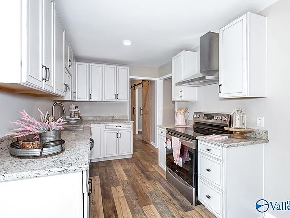 This amazing 4 bed, 2 bath home sits on a little over an acre of land. Recently updated inside and out you are not going to want to miss out on this one. Updates include new LVP flooring, cabinets, doors, bathrooms, smooth ceilings, light fixtures, and appliances. HVAC was just serviced and some new duct work ran. The home offers a 1200 sqft detached garage with 3 separate work spaces. This home is a GURLEY address but BUCKHORN zoned. Owner of the home is a licensed realtor.