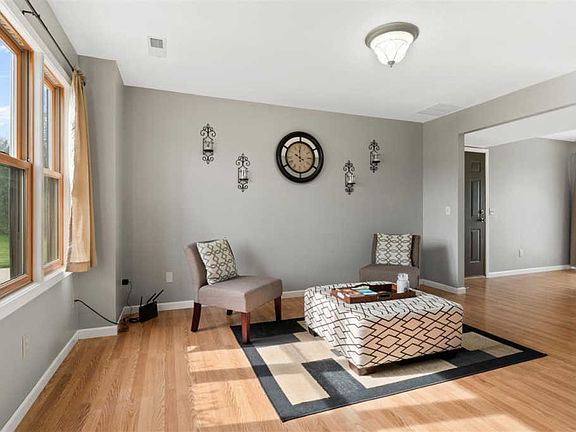 Move in ready & wonderfully maintained 4 bedroom, 2 full bath home set on a large third acre lot. The covered front entry welcomes you into the open living room & dining area. The kitchen was designed for efficiency & offers plenty of oak cabinetry & counter space for meal prep. All kitchen appliances remain including the washer & dryer, plus fridge in garage. Two desirable main floor bedrooms are both spacious. The master bedroom is currently used as a secondary living/family room. Upstairs are 2 additional bedrooms that share a Jack & Jill bathroom, each have a private vanity area. A finished bonus room, currently used for storage, is ideal for a play/study room, home office or an extra bedroom. Additional details include a 2 car attached garage with handy service door, new roof in 2014, brick & vinyl exterior, new interior paint throughout, ceiling fans, main floor laundry, walk-in closets in 3 bedrooms, carpet in upstairs bedrooms, & easy-care flooring on main. The huge backyard is fully fenced, with a patio for entertaining, a garden shed for lawn care storage, plus the swing set stays. A quiet country neighborhood with a convenient location one block from Rieke Park, plus nearby schools & Bridgewater Golf Club, without constraints of being in a typical subdivision. Pride in ownership shines throughout this home. Qualifies for USDA financing!