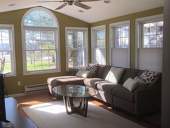 Gorgeous setting for this well maintained end-unit condo, with views of the wonderful meadow and the Connecticut River. Walk out your back door to access the walking path and all that nature has to offer! Main level includes living room with gas fireplace, dining room with breakfast bar, updated kitchen with great counter space and all appliances, and half bath. Additional sun drenched 4 season room has vaulted ceiling with fan and a beautiful view of the meadow and the river. Watch the seasons change from the comfort of your couch! Second level includes master bedroom with en suite full bath, second bedroom, second full bath, and fabulous bonus room! Enjoy working from home in a great office space, relaxing in a comfy study, or having an additional sleep space for guests. Unit also has a full basement with washer and dryer, a one car garage, plenty of guest parking, a community garden, and wonderful walking path down to the river. Are you ready for the convenience of condo living? This home is move-in ready for you!!