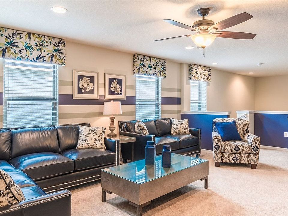 Welcome to Windsor at Westside Resort, where this spacious 7-bedroom, 5.5-bathroom vacation home awaits you. Perfect for families, this home features a private pool and spa, and is conveniently located just 6 miles from Disney World. The home offers a fully equipped kitchen with dining for eight and additional seating at the breakfast bar, ensuring you feel at home during your stay. This home is designed with family fun in mind, featuring a game room equipped with a pool table and air hockey. The outdoor area includes a dining space for six and two sun loungers by the pool. Each bedroom is furnished with a smart TV, and the kitchen is fully equipped for all your culinary needs. For an additional charge of $30 per day plus tax, you can heat the pool and spa. The resort allows a maximum of three cars, and parking is free on-site. Additional rental items such as BBQs, cribs, and strollers are available for rent. Located in the heart of Central Florida, Windsor at Westside Resort offers easy access to major attractions. Disney World is just 6 miles away, while Universal Studios and SeaWorld are within a 20-mile radius. The resort is also close to shopping and dining options, with Publix Supermarket just 3 miles away. The property is smoke-free and pet-free, ensuring a comfortable stay for all guests. Check-in is seamless with online email check-in, and 24/7 on-call maintenance is available. Complimentary WiFi and towels and linens are provided. Please be aware that the resort will fine you if you block the sidewalk or park on the street. A security camera is installed at the front entry for your safety.