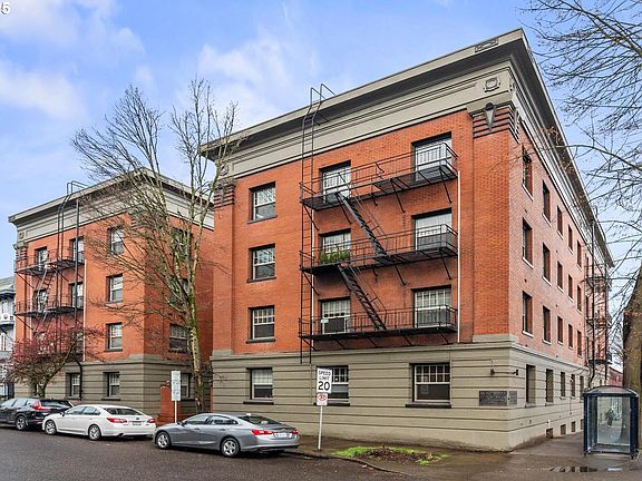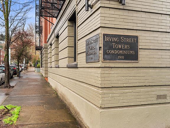 Light and Bright Nob Hill Condo in Historic Irving Street Towers! Period charm abounds with original fir floors, exposed brick, built-ins, and tall ceilings with crown and picture molding. Cheerful kitchen has tile counters and floor, and stainless steel appliances. Moody tiled bathroom features updated vanity and lovely clawfoot tub. Spacious living room provides versatility with a roll-out Murphy bed. French doors lead to ample separate bedroom with wardrobe. In-unit storage closet plus deeded storage space in basement. Community laundry room and bike storage. HOA dues cover exterior maintenance, water/hot water, sewer & trash/recycling. No rental cap; 30-day minimum rental term. Fantastic location near coffee shops, eateries, grocery and boutiques. Super convenient to Timbers stadium, Streetcar, parks, medical centers & so much more! Walkscore=98/Bikescore=97.