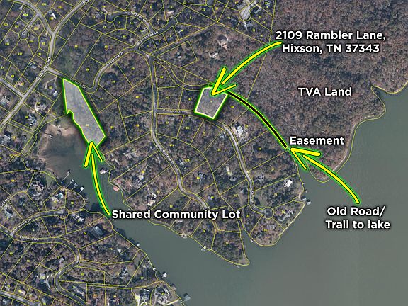 Price adjusted for quicker sale! Community waterfront lot access with rare opportunity to own 1.38 acres in Hixson. Two different ways to access to Lake Chickamauga, with this unique lot. No HOA, limited restrictions. This beautiful, wooded lot is nestled in an established neighborhood and borders an easement leading to over 200 acres of TVA property. Information provided by RPA implies gravity sewer is available at front corner of lot and within 100' distance to sewer the lot is most likely divisible. 22 Residents enjoy exclusive access to a community dock off of Wisteria Lane. The community lot is 2.81 acres and is shared with 22 lot owners and has gated access. The community lot features paved parking area, picnic table and small dock. Don't miss your chance to build your dream home just steps from Lake Chickamauga!