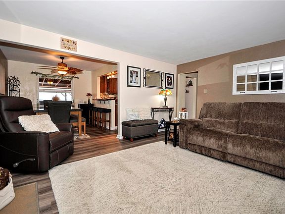 Welcome to this beautifully maintained level-entry ranch home, offering effortless one-floor living with modern updates throughout! This move-in ready gem features 3 lovely bedrooms, 2 full updated baths, and an open layout. The updated and functional kitchen boasts warm wooden cabinetry, SS appliances and breakfast bar. The gorgeous newer laminate flooring adds warmth and charm. Stay warm on chilly nights with your beautiful stone fireplace in the living room.