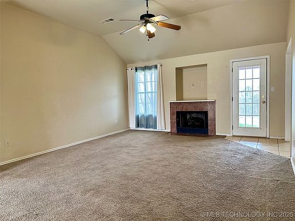 Great for investors (property to be sold as-is) Back living area with fireplace. 3/2/2, split bedrooms, master bath with two sinks, linen closet, walk in closet and tub and shower together, inside utility close to master, covered front porch, covered patio, built in selves in garage stay.