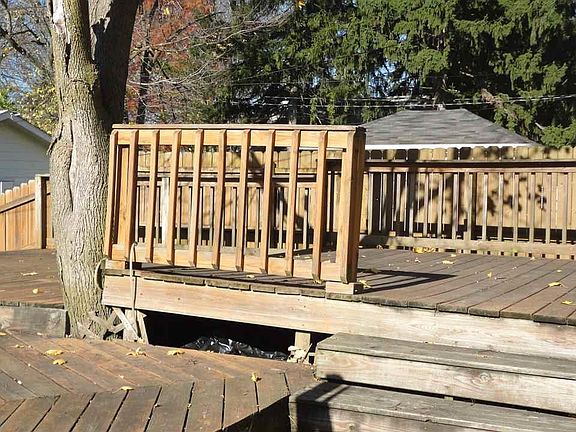 Seller will not provide closing cost allowance at this price. Great home with many super features! Large covered front porch. Spacious living room with natural woodwork which opens to a large dining room with a hardwood floor. Updated bathroom. Retro kitchen with sliding doors which opens to a multi tier deck. The large multi tier deck has built in seating. Fenced backyard with a privacy fence. Fire pit. Great backyard for entertaining. TWO and a HALF car detached garage that looks like new on the inside. Some appliances remain. Dry walled basement with a laundry room and toilet. A must see home!