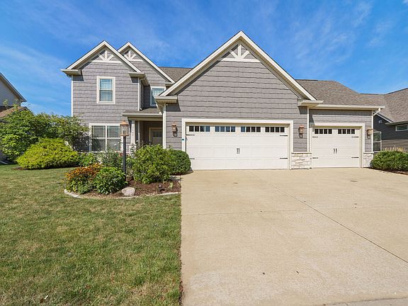 This stunning Arts & Crafts style home boasts a fantastic floor plan and exquisite design! The main level features an open layout with beautiful wood floors extending from the entry through the kitchen, dining, and flex rooms. The kitchen stands out with granite countertops, custom cherry cabinets with ebony trim and island bead board, and high-end appliances. The main living area showcases high ceilings and a striking fireplace flanked by windows overlooking the backyard. A first-floor bedroom is conveniently located next to a full bathroom with a step-in shower. The mudroom, with ample locker space off the garage, makes coming and going and storing all of your bags and gear a breeze. Upstairs, the master bedroom suite offers double sinks, granite countertops, a tiled shower with a glass door, and a spacious walk-in closet. Three additional large bedrooms, a third full bath, and a generous laundry room with a sink and extra counter space are also located on the upper level. The finished basement features a built-in desk smartly placed in the corner, along with a sixth bedroom and a fourth full bath. There is also plenty of storage space in the unfinished area.. The backyard patio is a large, free-form area perfect for arranging multiple seating groups. Recent upgrades by the current owners include a black aluminum fence and additional landscaping. The three-car garage comes with built-in shelving and storage systems. Additional updates include a WiFi-enabled irrigation system, custom window blinds, custom wood trim, a new a-coil for the AC in 2019, a tankless water heater in 2020, a new sump pump, and a water backup system. The home has been pre-inspected for your convenience and will have a new roof installed next week!