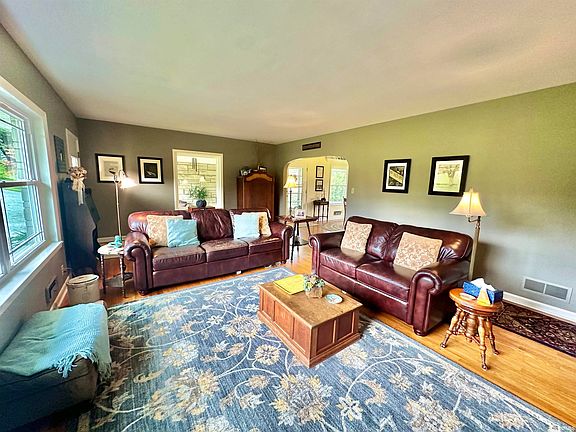 Welcome to this well-maintained Bedford Stone ranch style home, situated on 2.15 acres on the Northside, near Scott Township Park! Offering both charm and functionality, this home features 3 bedrooms, a full semi-finished walk-out basement, and beautifully preserved hardwood floors throughout the main floor. The great room includes a cozy wood-burning fireplace, seamlessly flowing into the formal dining room for an open, inviting space. The completely remodeled kitchen boasts custom cabinetry built by owner, quartz countertops, a work island/bar, modern pendant lighting, and Whirlpool Gold (white ice) appliances and Bosch dishwasher(all included). The master bedroom offers double closets and a private ensuite bath. The walk-out basement holds some hidden gems, including a "Harry Potter" reading nook under the stairs, a spacious living area with a fireplace—perfect for entertaining—and a storm shelter for peace of mind. The basement also has handcrafted cabinetry and includes a large laundry room and opens to an 18x11 patio overlooking the backyard. For car enthusiasts or hobbyists, the standout feature of this property is the massive 60x24 detached garage, with space for four cars and an attached heated 14x24 workshop. An additional attached one-car garage connects via a charming breezeway, leading to yet another outdoor patio space. This home has been updated with a new roof (2016), septic system (2017), HVAC (2013), and brand-new windows (2024). There was a 2nd drivewary entrance added for safety. While the property is on public water, it also includes a cistern that is no longer in use and with a little effort it could be an additional water source for a garden. Move-in ready and full of potential, this home combines comfort, space, and convenience in a peaceful Northside location.