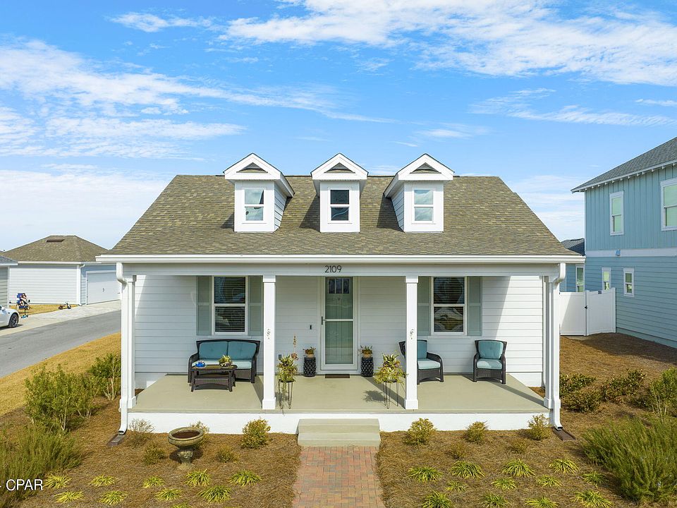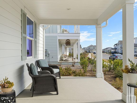 Beautifully designed, this home features the Islamorada floor plan. With a large inviting covered front porch. Beautiful, very spacious family room with cathedral ceilings. It has a spacious gourmet kitchen with a white Farmhouse sink, island, pantry, stainless appliances and quartz countertops. Large master bedroom with Tray ceiling, walk in closet, double vanity and oversized walk in shower. Plenty of storage space inside the home and in the detached garage with ceiling and wall shelving. OVERSIZED CORNER LOT with a vinyl privacy fence, this low maintenance backyard boasts a large screened in back porch with outdoor fireplace. This home has front street parking, as well, as additional paver parking added in the back. It has a gutter system installed, and also has a Water softener system with RO faucet installed at the kitchen sink. Ring camera's will stay. Home does have a Home Warranty that is transferable to the new owner. You'll love the waterfront community of Sweetbay, featuring a community dock, two pools, playground, shopping center (coming soon) and so much more for residents.