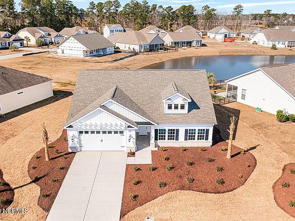 Welcome home to this NEW - MOVE IN READY custom built home. Spring Mill Plantation is a well established neighborhood, perfectly situated between North Carolina's best beaches and the South Carolina state line - where you will find endless restaurants, shopping and a level one trauma center. This home is loaded with upgrades offering 1600 sq. ft. of living space, 3 bedrooms, 2 bathrooms PLUS a 2 car garage on a WATERFRONT homesite overlooking a beautiful pond. The moment you pull up you'll notice the beautiful landscaping and curb appeal. Open concept floor plan with custom wainscoting throughout the entryway and living room. Stainless steel appliances, walk-in pantry with custom shelving, luxury vinyl flooring, flush mount lighting and quartz countertops in the kitchen. You will love the openness and attention to detail throughout this home. Arched opening to the kitchen with accent colors and spacious dining room that features built-in seating. Extensive custom built in bookcase and storage in the living area with built in custom lighting. Oversized master en-suite featuring two spacious closets and a custom designed accent wall. You will feel like your home is a spa with the STUNNING ceramic tiled walk-in shower. Double vessel sinks with beautiful custom cabinetry. Modern, vintage glass knobs in this home add so much elegance. The attic offers extensive walk in storage. Every detail throughout the home will leave you in awe.