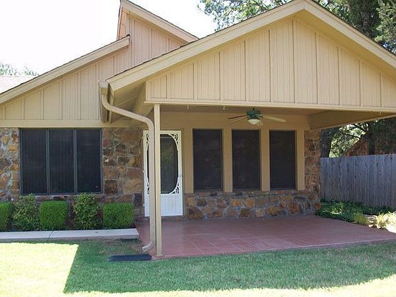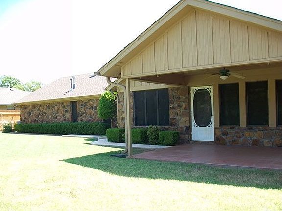 In less than a minute you can be zipping around the golf course from this gorgeous rock home! Updated bathrooms with granite counters, cabinets, fixtures. Walk-in closets in both master bedroom and second bedroom. Beautiful and updated flooring thru-out this elegant home with a socializing formal dining room that leads to a covered patio with recessed lighting. Makes for perfect entertaining where you will be proud to show off your landscaped back yard. Remember to look in the large shop with baseboard heat and shelving. With a look and feel of Tuscany and move-in-ready! Call Theresa for your appointment at 580-251-0511.