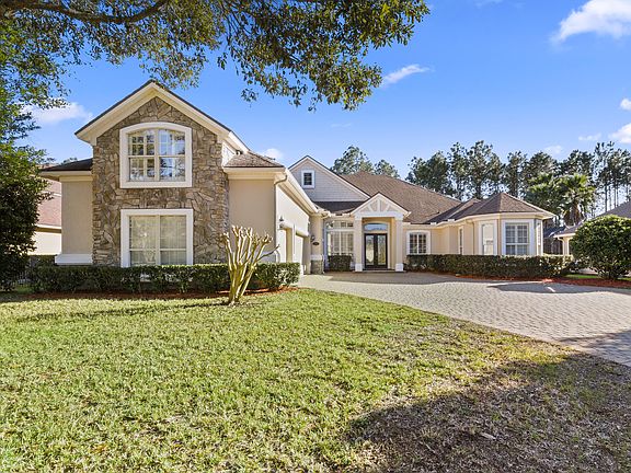BACK ON THE MARKET! Update: NEW ROOF (TBC May 2019). NEW APPLIANCES, NEW COUNTERS, NEW SINKS, NEW FAUCETS, NEW PAINT INSIDE AND OUT, NEW SCREEN. This magnificent South Hampton home sits right on the 4th fairway, offering five bedrooms, five full baths and 4,001 square feet of living space with fantastic upgrades throughout. A wide pavered driveway and beautiful landscaping welcome you home. Inside, find lofty ceilings, ambient recessed lighting, upgraded crown molding, custom plantation shutters throughout, fine fixtures and high-end finishes. Bright and spacious, the main floor features an open concept perfect for entertaining or relaxing. Includes built in surround sound inside and out. NO CDD fees in the amazing St Johns County Community. Seller offering $3k for new carpet upstair