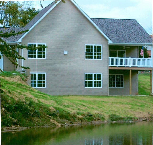 This home has a beautiful setting overlooking a good sized shared lake with a covered maintenance free deck that you can access from the LR and the Master BR. This home has one of the most beautiful stone fireplaces that extends to the top of the vaulted ceilings. Nice kitchen w/ granite countertop. Large master BR & walk in closet on main along with Dining Room. Walkout basement with a 2nd bedroom and lots of unfinshed area for you to finish. This home is beautiful on the inside