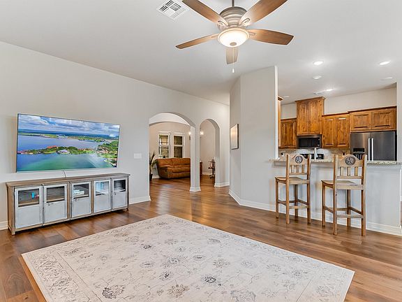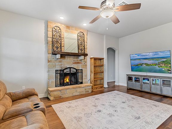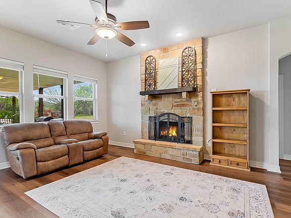 Welcome to 2109 Whitewater Drive - where peaceful Texas Hill Country views surround you in every direction. This home gives you the best of both worlds: quiet country living with city conveniences just 20 minutes away. It’s tucked inside Whitewater Springs, a community that offers a neighborhood park, pool, hiking trails, and even a stocked fishing pond. Plus, with the Balcones Canyonlands National Wildlife Refuge wrapping around most of the neighborhood, you’re truly one with nature. Built in 2019, this custom home has a spacious, open split bedroom layout with 4 bedrooms and 2 bathrooms. The kitchen is a standout, with granite countertops, beautiful custom cabinets, and plenty of room to cook and gather. In the living room, you’ll find a cozy wood-burning fireplace with a floor-to-ceiling stone surround that really makes a statement. There’s also a formal dining space that can double as a home office, playroom, or anything else you need. The primary bedroom is set apart from the others for extra privacy, and it's en-suite bath is complete with dual vanities and a large soaker tub. Out back, a large covered patio gives you the perfect spot to sip your morning coffee or host friends for a BBQ. Big windows throughout the home let in tons of natural and allow you to take in the hill country views from every room! There’s even extra storage tucked under the massive back patio. This place is full of charm, you’ll definitely want to check it out in person!