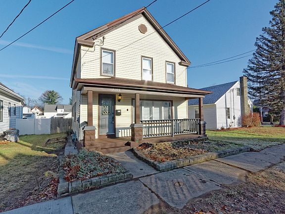 Absolutely Gorgeous Renovation! Move right into this completely renovated large 3 bedroom, 1.5 bath home with modern amenities & renovations. Open living room and large dining room, brand new kitchen with granite counter tops, tile back splash and stainless steel appliances, mud area off of side door entrance laminate hardwood flooring through out, new baths with ceramic tiled showers and floors, 2nd floor full bath has large jacuzzi tub and separate ceramic tiles shower, updated electric, new plumbing, ample recessed lighting, crown molding, new hot water tank and freshly painted through out. Full basement and fenced in yard and full front sitting porch. Off street parking from back alley.