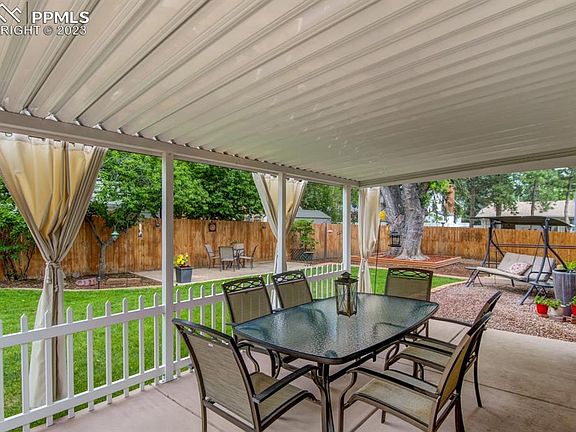 This is an immaculately maintained home. The living room has a picture window view of the mountains, custom built-ins with cabinets and shelves, recessed lighting, and an electric fireplace for added ambience. Over-fireplace TV mount with recessed electrical and cable connections. The kitchen boasts updated appliances (LG stainless side-by-side refrigerator, Whirlpool stainless dishwasher with stainless interior, Samsung gas stove with convection oven, griddle and air fryer), cherry cabinets, two passthrough bars, pull out drawers in lower cabinets, tons of storage, a pantry cabinet and a reverse osmosis filter with mineral replacement in the sink. The filter is also tied to the ice maker in the LG refrigerator. The master bathroom was recently updated and has a custom-built vanity with full length pull out drawers for more efficient storage and LVT flooring. Both the master and the larger guest bedroom have walk-in closets. The master closet has custom built-ins. In this home, the lower lever, with a ½ bath, is set up as an office with a built-in desk but can easily be used as a TV room, family room, craft room, kids’ playroom – whatever you need. The laundry is conveniently located on this level. The large covered patio off the dining room is the perfect way to start or end your day. A great place for friends, family, BBQ’s or a quite cocktail hour. The patio looks out onto a large yard with aspen and maples trees, shaded and peaceful. Enough grass to enjoy but not too much to water and mow. The front of the home is fully landscaped and easy to maintain, again with just enough grass. Both front and backyard have a sprinkler system fitted with timers. There is a space for RV parking with a rolling gate to the side street. The 10’ X 16’ shed has built in shelves and hooks for garden tools. This home is convenient to both Powers and Academy. You are also close to shopping, schools and churches.