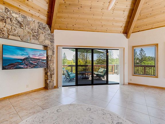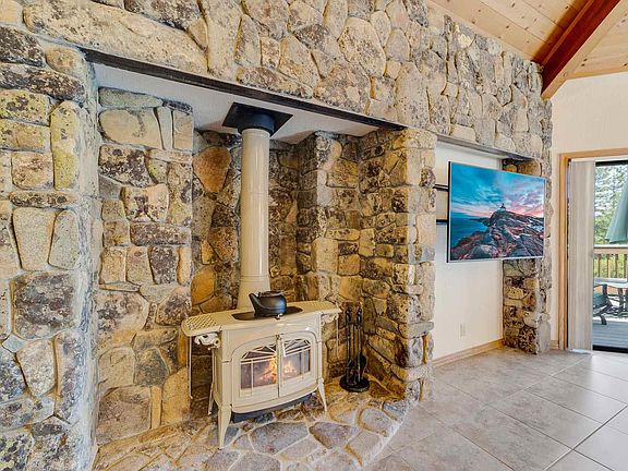 Peaceful Tranquility in the gated Apple Valley Estates. Tucked at the end of the road and sitting on almost 1 acre, this property backs to green space and offers wide open and expansive views. Inside, the recently remodeled kitchen is the center of the home and features beautiful slab granite counters and a large island making it perfect for entertaining large crowds. It over looks the living and dining areas and the great room makes quite a statement with its show stopping vaulted pine ceiling, rock wall surrounding the wood burning stove, and wall of windows showcasing the amazing views. The master bedroom suite is on one side of the home with a recently remodeled master bathroom featuring granite counters, dual sinks, a nicely tiled shower and soaking tub where you can relax while taking in serene views. In addition, there is access to the deck. On the other side of the home are 2 more bedrooms, one with an attached bath. There is also a half bath located close to the great room. Outside, the spacious deck hugs the back side of the home and is the perfect place to enjoy the views, a cup of coffee, glass of wine or just good conversation with friends. The hot tub is an added bonus!!! Beyond the deck the space is open with a park like feel. The front yard is elegantly landscaped and has a fenced area with raised beds which are perfect for your vegetable garden. In addition to the garage, there is an uncovered side area for additional parking. This home is located in a fantastic neighborhood with a community pool and clubhouse and yet, at the same time, feels like it is nestled far away in the country. It offers the best of both worlds make your appointment today!