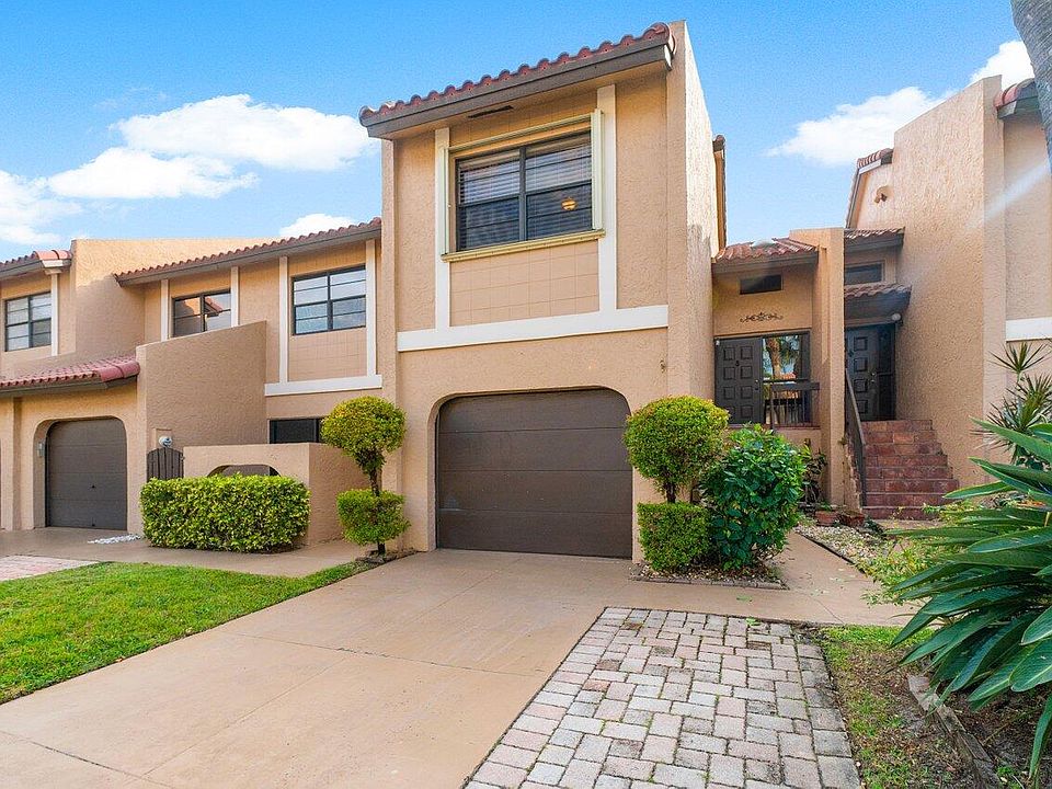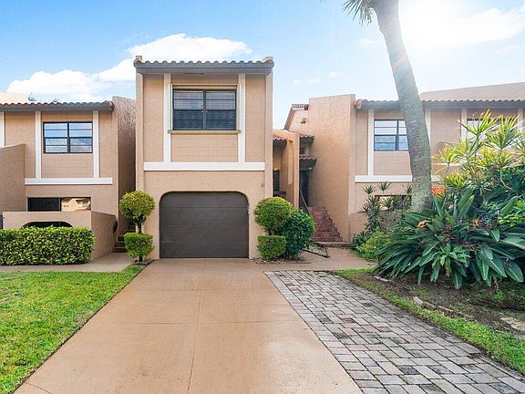 Lovely very rare townhouse with garage and lake views on Montoya Circle close walking distance to religious establishments. Centrally located and excellent location in Boca Raton near everything. 2 bedroom, 2.5 bath townhouse with 1-car garage in the desirable neighborhood of Las Brisas. This spacious home features beautiful serene lake views! Tile downstairs & wood floors upstairs. Accordion shutters throughout. Huge master suite with spacious sitting area or lounge and with a private balcony overlooking lake. Community pool walking distance from home!