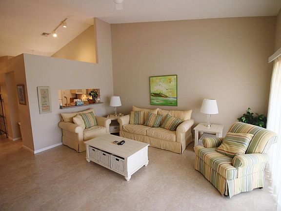 ABSOLUTE MINT CONDITION. NEUTRAL EARTH TONES WITH FURNISHINGS INCLUDED. 20'' BEIGE TILE THROUGHOUT. KITCHEN HAS PEBBLE MICA COUNTERS, GLASS DISPLAY CABINETRY, BREAKFAST AREA AND LARGE PANTRY. MASTER BEDROOM IS LIGHT & BRIGHT WITH A LARGE WALK IN CLOSET. MASTER BATH HAS DUAL SINKS, ROMAN TUB AND TILED STALL SHOWER. LIVING ROOM HAS VAULTED CEILINGS, A CONVENIENT KITCHEN PASS THROUGH AND SLIDERS OPEN TO PATIO. THE SCREENED PATIO HAS SERENE GARDEN VIEWS AND FEATURES SLIP PROOF FLOORING. THERE IS A LARGE DINING ROOM WITH DECORATIVE PLANTER SHELVING. THE SECOND BEDROOM/BATH ARE SEPARATE FROM LIVING AREAS. THERE IS A PRIVACY DOOR TO THE UTILITY ROOM WHICH HAS A NEWER WASHER/DRYER & WATER HEATER WITH SECURE SS CONNECTIONS. NEWER 2012 3-TON HIGH EFFICIENT (15 SEER) CARRIER A/C. COME SEE THIS VILLA!