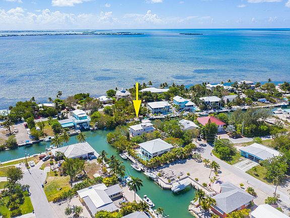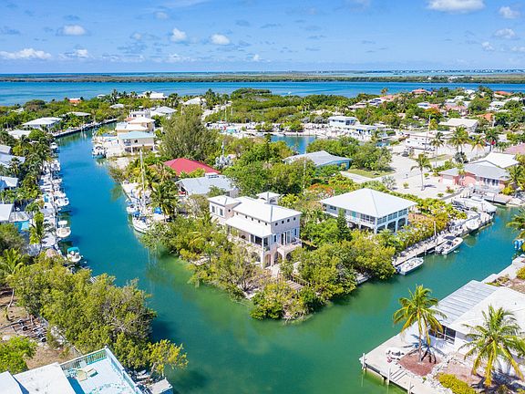 Tropical Mediterranean CBS , Corner Canal home w/ open floor plan & cathedral ceilings, balconies on all compass points. Two blocks from Atlantic and half mile off highway in prestigious Cudjoe Gardens (MM21). One block only full service waterfront marina between Marathon and Key West. Living area 14' above sea level, mature landscaping with more flora and fauna and less concrete. Quiet and private Florida Keys indoor/outdoor living at its finest.