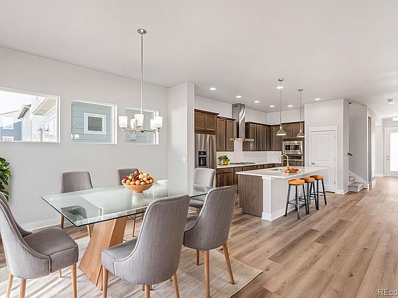 The Kalooga combines classic comforts and modern luxuries into a stunning open floor plan. Featuring three spacious bedrooms upstairs and a fourth in the finished basement, there is ample room for rest and relaxation. Three full bathrooms and another half bath on the main floor easily fulfill anyone's needs. Delight in gourmet experiences in the chef's kitchen, and enjoy outdoor moments on the covered patio. Inside, the elegance of upgraded hardwood floors pairs with premium carpeting for utmost comfort. Modern conveniences include a tank-less water heater and efficient air conditioning. This home has a three car garage! Send the David Weekley Homes at Painted Prairie Team a message to begin your #LivingWeekley adventure with this new home in Aurora, CO!
