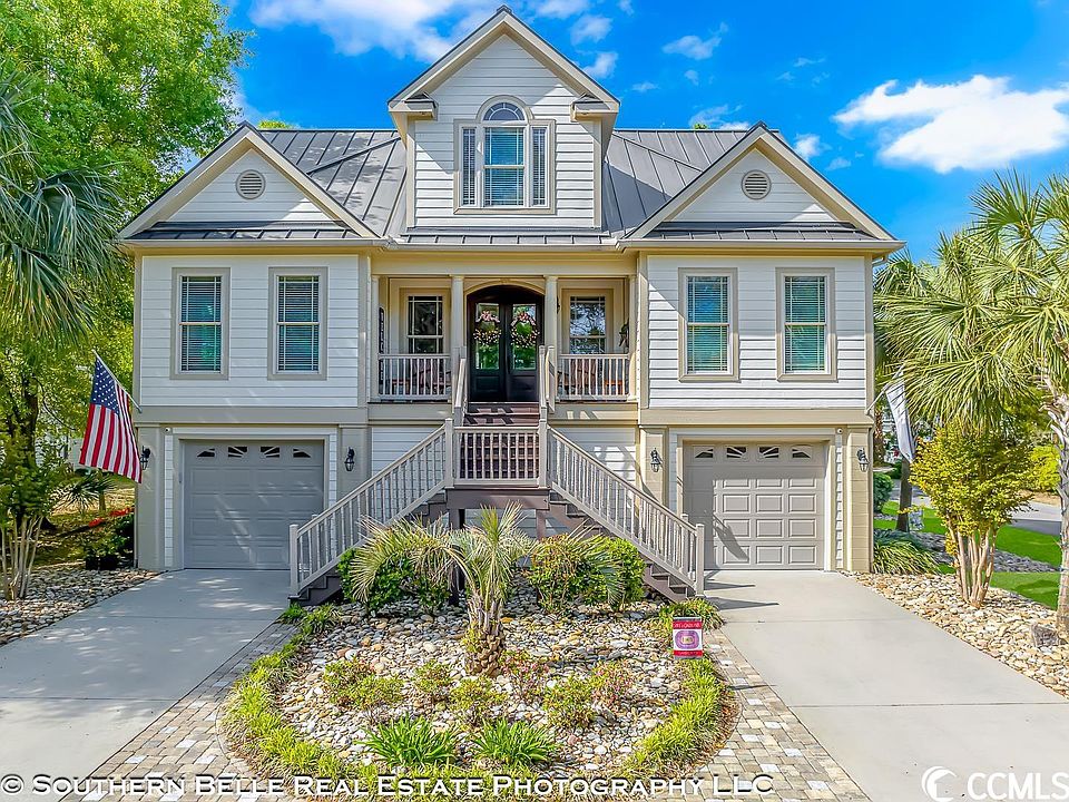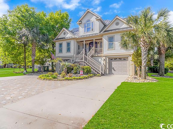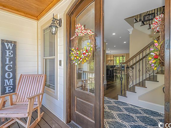 Come see this stunning custom built home located East of Highway 17 in Surfside Beach! This home sets on a corner lot and includes 5 bedrooms, 4 full baths, and 2 ½ baths. As you enter the home you are greeted by the beautiful staircase and open concept floorplan. The home features many high-end finishes including oak hardwood flooring throughout, crown molding, custom cabinetry, whole house audio and much more. The main living area includes three sliding doors that open to the large four seasons room, overlooking the backyard. The home is being offered fully furnished; it boasts two large master suites, three guest rooms, a gourmet kitchen, breakfast bar, and an extra large great room. Outside you will find the ultimate backyard oasis with a firepit, heated saltwater pool and hot tub, covered patio, mature live oaks and palm trees. Under the home includes a finished multipurpose area with a half bath and ample amount of space for storage. Just a short walk to the beach, grab your flip flops and beach chair and enjoy what coastal life is all about! Buyer is responsible for verification of square footage, HOA & zoning.