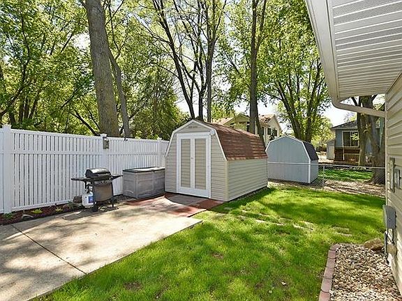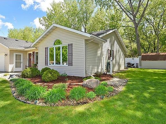 Delightful 2 bed 2 bath end unit twin home with NO association dues. This meticulously cared for home features a beautiful kitchen with center island, abundance of cupboards, quartz countertops and hardwood floors. From the bright and airy sunroom you can access your private backyard which is full of perennials and includes a patio and storage shed. 2 large bedrooms, vaulted ceilings and gas fireplace in the living room. All kitchen appliances are new within the last years excluding the refrigerator, roof in 2015, water softener - owned 2016, 2 stall garage completes this home. You will feel right at home in the great and comfortable property.