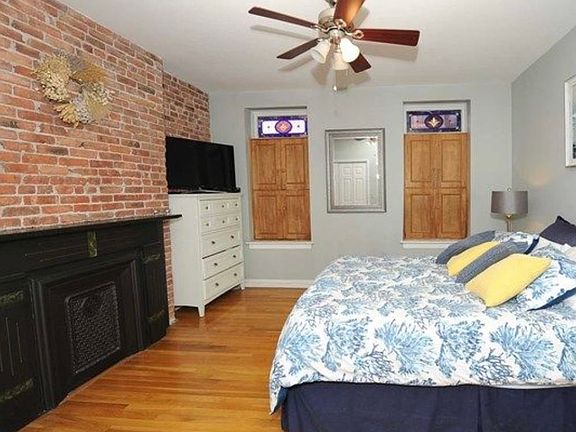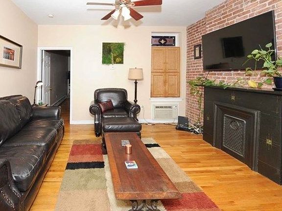 Discover the blend of historic elegance and modern luxury in Hoboken's vibrant Uptown East. This home features a restored fireplace mantle, stained-glass windows, and exposed brick accents with hardwood floors. The gourmet kitchen boasts 42" cherry cabinets, stainless steel appliances, granite countertops, and a breakfast bar perfect for meals and entertaining. Bedrooms are positioned at opposite ends with ample storage, including a built-in closet system and basement storage. The updated bathroom enhances your living experience with classic touches. In-building laundry for added convenience. Commuters enjoy NYC access via the nearby bus and 14th St Ferry, with optional garage parking. A landscaped common garden offers a perfect space for grilling and entertaining. With Trader Joe's, New York Sports Club, CVS Pharmacy, VEG ER for Pets, and the famous Dino and Harry's all a very short walk away, enjoy the best of Hoboken living and comfort with easy access to dining, shopping, fitness, and pet care services.