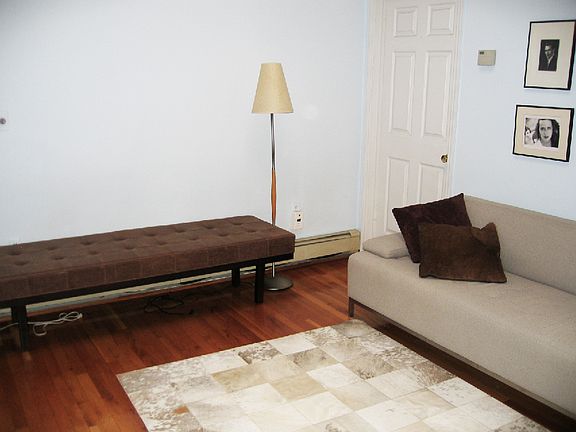 The best value in Hoboken in a prime location! This 2 bed 1 bath top floor unit boasts original architectural details including exposed brick walls, stained glass, 2 skylights, and 2 original decorative fireplaces. Hardwood floors throughout, high ceilings with ceiling fans, and double pane windows in every room. On opposite ends of the unit are the 2 bedrooms with great closet space, perfect for roommates! Adding to the appeal is the common landscaped backyard and BBQ area. Shared washer/dryer and large storage space in the basement. NYC/PATH bus 1 block away, 3 blocks to the ferry. Trader Joe's just a block away!