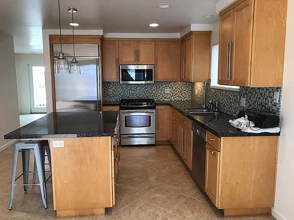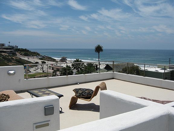 ~Spectacular 4 BDR 3 1/2 BATH Townhouse located 100 yards from Moonlight Beach ~Separate 1 BDR 1 Full BATH with private entrance above large 2-car garage (no kitchen..perfect for private office or guest quarters) ~Front patio with ocean view and full rooftop deck with panoramic ocean views ~Private back courtyard with outdoor shower and separate entrance ~Kitchen has all stainless steel appliances (dishwasher, refrigerator, stove) with maple cabinets, granite counter tops and very large kitchen island ~Nice bright bathrooms with mosaic glass tile and classic style sinks and fixtures ~Ceiling fans in all rooms for perfect airflow ~Tile floors throughout with carpet in bedrooms ~Washer / Dryer included Trash, Sewer, landscaping included