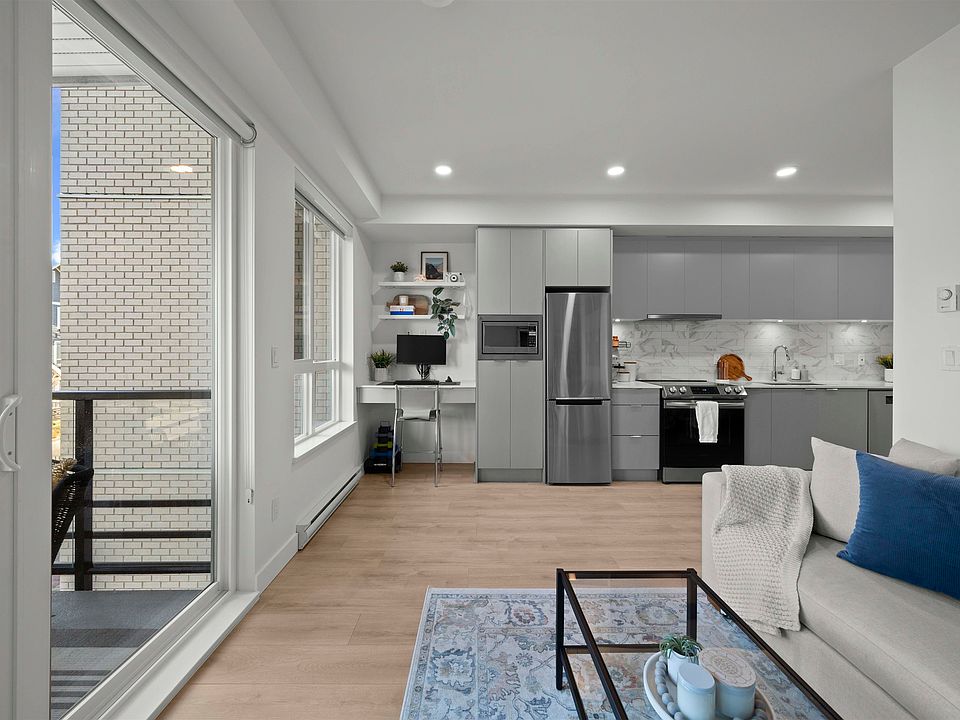 Step into this sun-soaked, W facing lbed masterpiece w/ 523 sq.ft of refined elegance.This thoughtfully designed home features soaring 9ft ceilings&seamless flooring throughout. Open-concept lvng space flows effortlessly into a sleek, state-of-the-art kitchen, adorned with S/S appliances, quartz countertops&stylish cabinetry.The tranquil bedroom ft. a lrg closet&serene ambiance,while the spa-inspired bath exudes sophistication.The patio serves as your perfect retreat,ideal for enjoying peaceful mornings or picturesque sunsets.Enjoy access to amenities that include a clubhouse/fitness center.Conveniently located near TwasCommons,BC Ferries, &top-tier golf courses, this home offers a lifestyle of luxury and convenience.Indulge in your new modern oasis!l Parking, 1 Storage. Open House Saturday, February 8 11:00 AM- 12:30 PM.