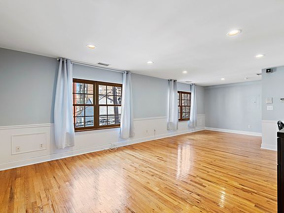 Spacious three bedroom, two full bathroom condominium with two garage parking spots and a common backyard. This unit has over 1400 square feet of living space with hardwood floors, recessed lighting, central heat/AC and washer/dryer. The living area is wide-open, and the kitchen comes equipped with a brand new stainless steel Kitchen Aid stove, Whirlpool fridge and dishwasher, ample cabinet space and breakfast bar. The oversized master bedroom has an en suite bathroom, cedar lined walk-in closet and views of the World Trade Center. This two unit building is conveniently located near shops and restaurants, and it's only ten minutes from the PATH, Ferry and Train terminal. Available for 8/1 move-in.
