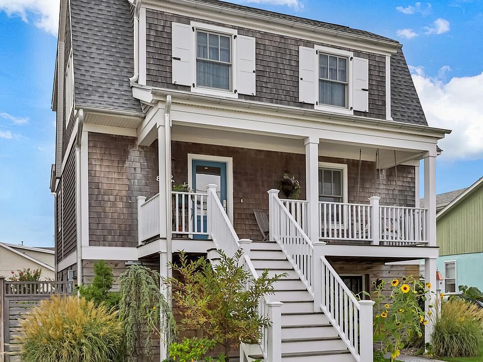 The Quintessential Beach House! This wonderful 3 bed 2.5 bath home was built in 2015. Enjoy summer breezes on the front and back porches and in the spacious and green backyard, unusual for the area. The house features sumptuous maple floors throughout, custom tile baths, built-ins in the dining rm and entry. The custom kitchen includes many special features:walk-in pantry,,custom cabinetry, toe-kick drawers, marble counters, a 6 burner Blue Star professional range, and Fisher & Paykel dishwasher drawers. The spacious one car garage can easily accommodate your kayaks and SUP gear, and workbench. It shares the ground level w/ a bike shed & bonus room, currently in use as a man-cave. Just 2 and a half blocks from the ocean, and a short bike ride into town or to your favorite restaurants.