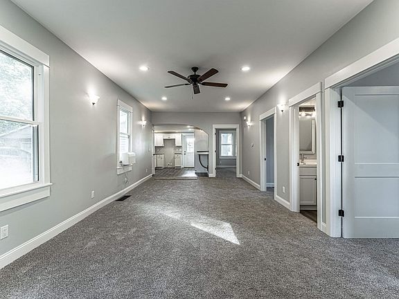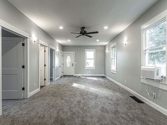 This totally renovated 3 bedroom, 2 full bath ranch style home is IT! Step inside and prepare to fall in love with the brilliant open layout and spot on colors/finishes. Interior boasts a gracious open concept living/dining area with great floor space and abundant natural light, a tastefully renovated kitchen with breakfast bar, exterior access point, and adjacent laundry facilities, full hall bath, and three comfortably sized bedrooms (one lacks a closet) -- master suite boasting an additional full adjacent private bath with a tiled walk-in shower. Property also features a partial basement (exterior access only), older detached garage with rear alley access, and various recent updates including exterior vinyl siding, replacement windows, architectural roof, interior and exterior doors, trim, electrical, plumbing, furnace, water heater, flooring, total kitchen and baths, fixtures -- LIKE NEW! Turn the key and literally move right on in to this beautiful residential dwelling!