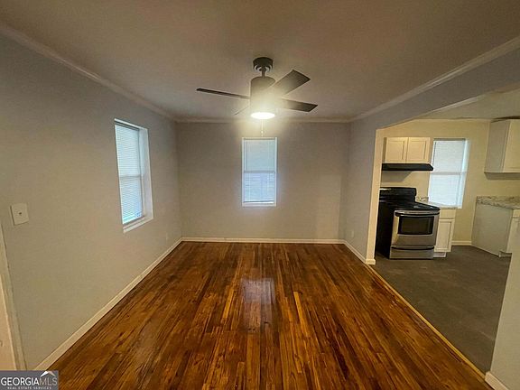 Why Pay rent when you can afford this 3 Bedroom, 1 1/2 Bath home that has simplistic charm and includes living room with ceiling fan, kitchen with new cabinets, new counter tops, and electric range, and icemaker refrigerator. The huge owner's bedroom has half bath with new vanity, new toilet. Additional features include freshly painted interior, ceiling fans and crown molding throughout, gorgeous hardwood floors, hall bath with new shower stall, new vanity and mirror. Outside is new metal roof, a flat back yard that is perfect for children and pets to romp and play, paved driveway with an attached carport. This home is located on a low traffic street with an easy commute to shopping and eating establishments. No HOA