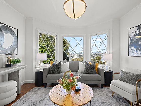 Built in 1898, this historical home blends Victorian charm with modern updates on a quiet cul-de-sac, several blocks from Glen Park Village. Enter the main level and take in the sweeping bay views from the living room. A formal dining room, two comfortable bedrooms, a full bathroom and a bright kitchen with stainless steel appliances and generous counter space complete the main level. Upstairs, you'll find a spacious primary suite with an en-suite bath and a bonus room, ideal for a home office, nursery, or creative space. The lower level with a separate entrance, offers additional flexibility with an unwarranted bonus room, half bath, and ample storage. A one-car garage sits at street level and the flat, sunny backyard is perfect for indoor-outdoor living and beckons to be be entertained in. New electrical panel, roof redone 3 years ago and seismic structural strengthening already taken care of. Glen Canyon, 280 & 101 freeway access, Glen Park BART and shops and restaurants just blocks away from this gem of a home.