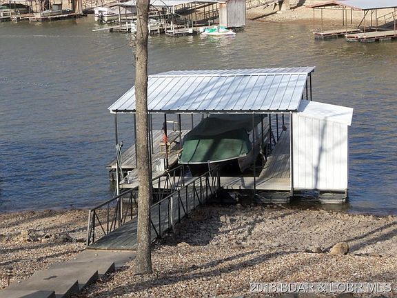 Wall of windows on lakefront to enjoy the view. Well-maintained home, At Home feeling when you walk in the door. Open concept living room, dining room & kitchen. Beautiful stone propane fireplace in living room & vaulted ceiling. Plenty of kitchen countertops including extra eating space. 2 MBRs, one on each level, 2 guest BRs & family room on lower level, great for family or company. Sit back, relax, enjoy the view from the 3-season sun room just off the dining room. Gentle walk to lake. Decks on both levels, desert landscaping for easy maintenance. 2-car attached garage. Located at 47 mile marker, Lake of the Ozarks, includes a 1-well dock with a boat lift & storage cabinet. Cove protection. Lot 9 available for extra $$