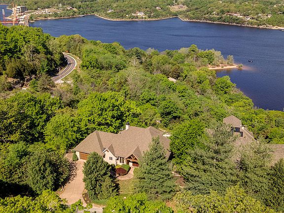 Style. Craftsmanship. Lake View. Absolutely stunning view of Table Rock Lake from this French Cottage Style home filled with upscale delights. Surrounded by lush landscaping, the main level Great Room has large windows to the view, discreet see-thru gas fireplace, dream kitchen, main bedroom with lovely ensuite bath, double office, powder room. Lower level: family room with wet bar, two more bedrooms & baths, theater with projection and huge 23' x 21' workout (or you-name-it) space. Laundry on both levels. Kitchen has lovely finishes with plenty of room, Viking induction cooktop, double wall ovens, Bosch dishwasher, large wine fridge and wood-panel front side-by-side. Dependable Landmarc Homes quality throughout, with signature 'berm' for privacy from the road! North of the Long Creek bridge, across from Long Creek Marina for boat & slip rentals, seasonal fun! Just minutes to Top of the Rock, Big Cedar and all the amenities of town.