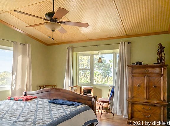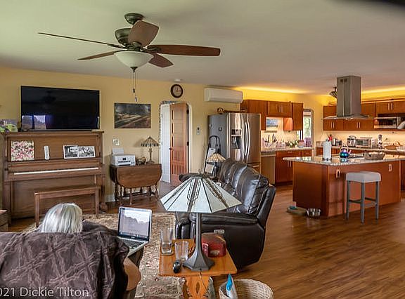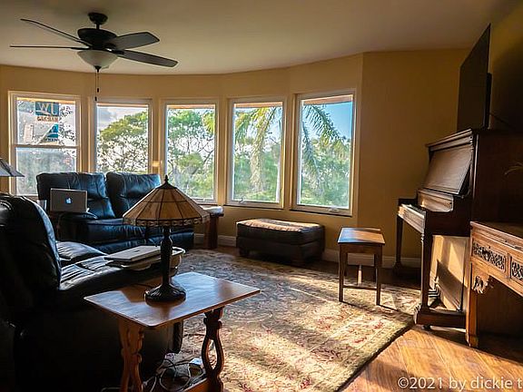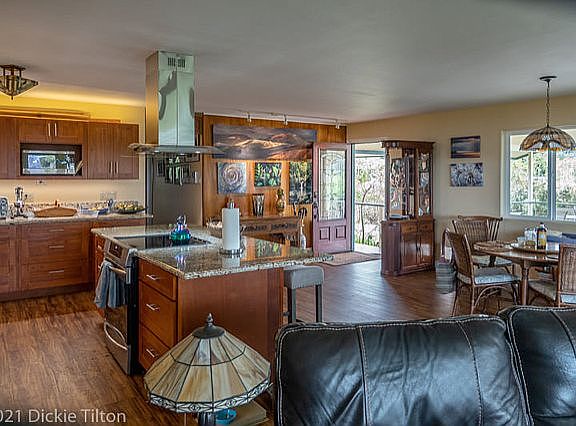 Main floor has 2000 SF, including a large great room (kitchen, dining, living), 4 bedrooms and 3 bathrooms (there are 2 master bedrooms w ensuite), plus an enclosed back lanai, and large covered front deck. Ground floor has 740 SF, including a large rec room with wet bar, one bedroom and bathroom, and a private entry from its own patio. There is a large carport/storage w workshop, a 200 SF outbuilding, 2 ornamental ponds with waterfalls, mature fruit trees, expansive ocean and mountain views, and a very quiet and private location only 15 minutes from Kahului.