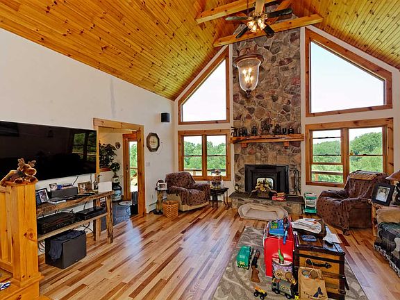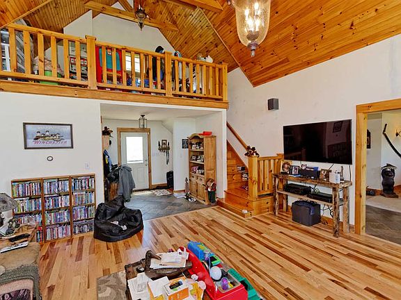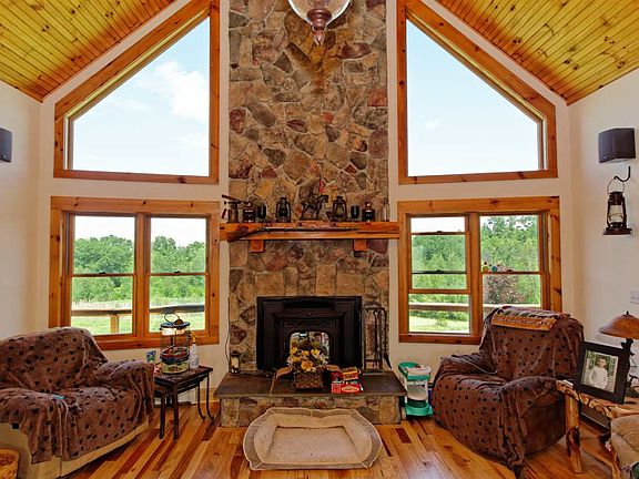 Bring the Horses, ATV's & Outdoor Activities! Enjoy beautiful sunsets in this Custom Log Sided 3 bedroom Chalet on almost 20 Acres. Please look at the floor plan in pictures, house is 2 levels. Front of the house is Walk Out and is being considered 1st Floor rather than a basement. Check out the new hickory floors & carpeting. New high efficient pellet insert on 2nd floor, gas fireplace on first floor. (Due to the new flooring please plan on removing shoes at the showing)