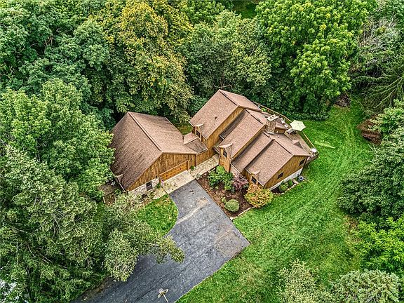 Custom built contemporary three bedroom with loft and unfinished Walk-Out basement on 5.2 acres with a creek and mature trees. Like a private park. Huge deck accessible from master bedroom, living room and dining area. Large garage with separate basement storage. Western Red Cedar siding. County Water. Gas fireplace in master and living room; wood burning fireplace in the basement. Septic system. Hardwood floors. Some updates such as curbless shower in main floor master bath, balcony added to second floor guest room for spectacular views of sunsets over the creek, granite countertops.