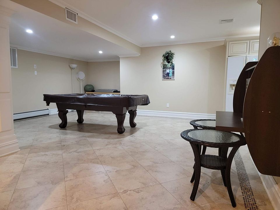 Large, modern, fully finished walk-out basement for rent. Newly built (in 2013). Modern kitchen. Utilities included. $2800/mth Features: * Part of a newly built (2013) modern house * 5 minute walk to express bus to NYC (approx. 30 min ride to NY Port Authority) * Fully equipped modern kitchen * Fully tiled floors - no messy carpets * Utilities (heat, hot water, electricity) included * Quiet cul-de-sac with plenty of street parking * 2 large bedrooms + 1 modern bathroom * Spacious living and dining area * Plenty of storage space and closets * Healthy baseboard (water based) heating * Owner pays for utilities. * Background check needed. * Lease term at least 6 months. * Last month's rent advance.