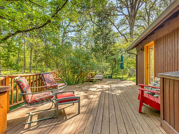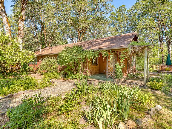 This idyllic 5.52 acre Sunny Valley property includes a 1,252 square foot 2 bd/1 ba primary residence that has been updated with an open floor plan, new high end flooring and appliances. Multiple outbuildings including a shop are also present on the flat acreage. Amenities of the primary residence include a private deck with a HotSpring hot tub. There is also a 1,000 sq ft studio/gym building that is a wonderful additional living space. The studio offers views of the surrounding mountains & opens onto a koi pond and English garden area. Both the primary home & garden areas are fully fenced. Gorgeous trees, flowers, & shrubs are present on the maturely landscaped grounds. Solar panels, a newer septic system, and a great well with a UV filtration system & 2,000 gallon holding tank service the property. Only 15 minutes from Grants Pass & 5 minutes away from the I-5, this is the perfect property to escape the confines of city life. Make your appointment to see this unique property today.