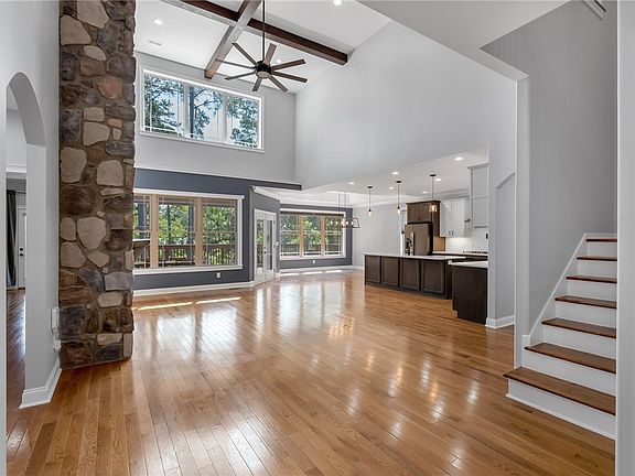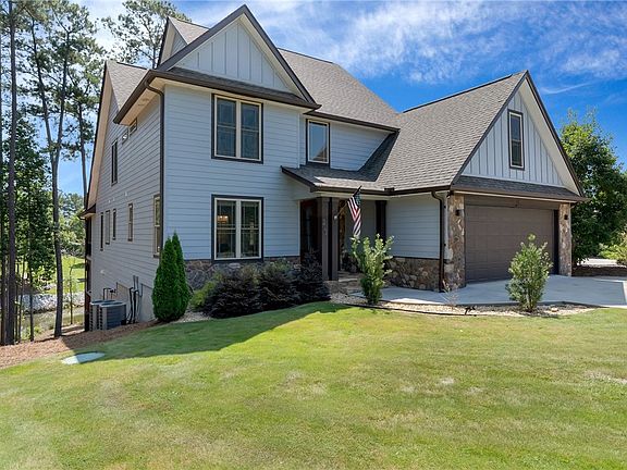 Welcome Home! Lake Keowee waterfront home with a covered dock. Nestled on a quiet cul-de-sac in the Clear Water community, this home’s thoughtful design created by Donald A. Garner architects brings new meaning to lakefront living. Be the place where everyone wants to gather with five en-suite bedrooms and a separate in-law suite, nearly 200' of water frontage and a covered dock. As you enter the driveway you notice ample space for parking and a spacious two car garage. There is a paved walkway that takes you down to the backyard/lake with a paved patio for grilling or relaxing, horseshoes and a fire pit. As you enter the home, there is a spacious entry way and two story foyer that opens up to the living room, chef's kitchen and dining room. You will notice the open concept design on the main level with stunning hardwood floors, two story coffered ceiling, large stone fireplace from floor to ceiling and large kitchen island. Just down the hall you enter the walk in laundry room fully furnished with cabinetry for storage and a separate sink. Primary bedroom and additional bedroom on the main level with full bathroom access. There is also a private screen porch entry off of the primary bedroom. The kitchen/living room open up to a large deck overlooking the backyard with beautiful lake views for entertaining. Head upstairs for two additional bedrooms and private bathrooms with a large bonus room that could serve as a sixth bedroom if needed. Head down to the basement for a finished recreation/family room with a kitchenette, fifth bedroom with private bath and walkout to another large deck for relaxing. Unfinished storage room/workshop offers plenty of space to store your lake toys with double doors opening up to the lower deck for easy access. Enjoy five zoned temperature controls and ceiling fans for year-round comfort, energy-efficient appliances, lake-supplied irrigation, and maintenance-free materials for easy living. Take a short boat ride to explore the local waterfalls, or enjoy sunsets from the Lighthouse restaurant. Less than 10 minutes to grocery stores, 15 minutes to Clemson with easy access to Atlanta and Greenville. All furnishings will convey. Welcome Home!