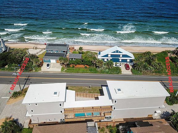 NEW ICONIC house in Vilano/St. Augustine! Highest quality amenities built in this engineered marvel. Built for living and sharing at the beach. Nearly 8000SF under roof. 2 wings connected with walkways, each feature OCEAN VIEWS, full kitchens, master suites and elevators. Plenty of room for privacy or gatherings; including the pool in the middle. The ground level is all stone and cement. Most ground cover is permeable so no standing water. Hurricane doors. Upper levels feature Pella 180 MPH windows, luxury vinyl plank flooring, all counter tops glistening Cambria quartz, custom cypress cabinetry, Jenn-Air stainless appliances. Decks cypress wood or stone. Drive thru Boat/RV Garage. Beach access across the street, boat ramp down the end of the street. Just 2 miles north of Vilano Town Cente
