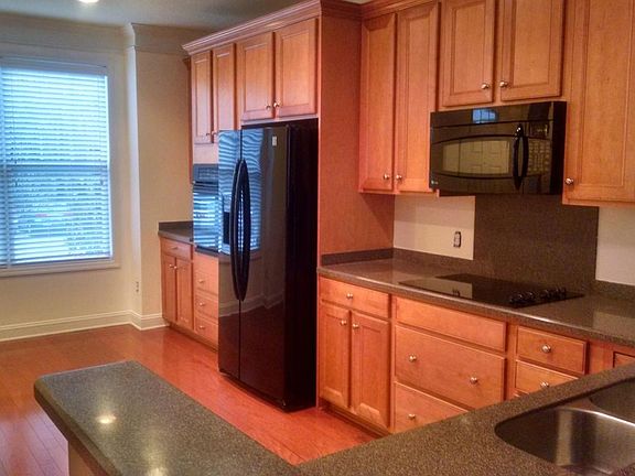Beautiful townhome is turn-key ~ Large kitchen features all top of the line appliances, including smooth top stove, built-in microwave and refrigerator plus a separate desk space, breakfast area, counter bar and double door pantry ~ Living/Dining Room combination has high ceilings, wood floors and built-in shelving for entertainment center ~ Dual masters are spacious and have ceiling fans, walk-in closets and baths with oversized tubs, separate showers, great vanity space and linen closets ~ The main master suite features crown molding and additional shelving/drawers in w-I-closet ~ Lovely yard in back is fenced off and perfect for a small garden and also grilling out ~ Oversized detached garage is accessible from the alley ~ Active HOA is wonderful here - just ask for a copy of the C&R's!