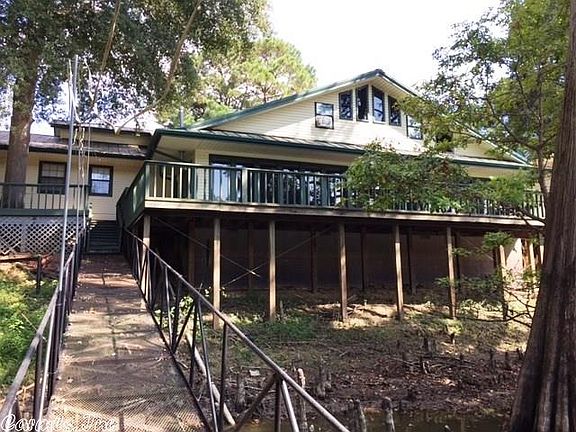 This cabin is a custom built 6 bedroom and 2.5 bath home with a large deck overlooking East Lake. The cabin features 2 stories with a master bed and half bath located on the second floor and 5 guest bedrooms with shared bathrooms downstairs. Last, this property includes a large metal boat house with electric that has room for 2 boats and includes a cleaning station for fish or waterfowl. All of this sits on a 0.09 acre lot on East Lake just a few minutes south of Clarendon, AR.