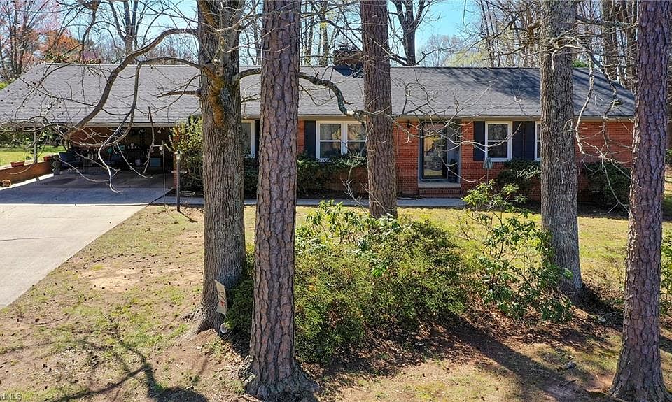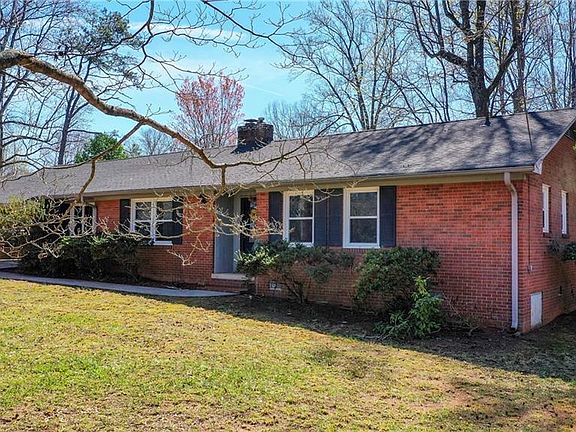 Great 3BR adorable brick ranch home with living space all on one level. An efficient and easy flow throughout. Formal rooms on the front of the house, small breakfast room and cozy family room on the rear. Two spacious bedrooms with convenient hall bath. Primary bed has half bath. The Home has been lovingly well-maintained. A flat large rear lot to enjoy! Privacy fence and patio area, outside entrance to storage room/workshop area. Roof 2019, gas furnace rebuilt in 2015. Outbuilding sold as-is. Ideal location within minutes Childress Vineyards and Walmart Neighborhood Market with convenient access to Hwy 52 & I-85. Won’t last long! Make your appointment today!