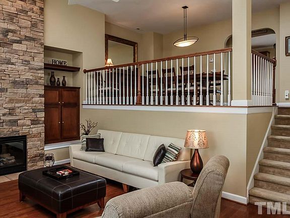 Gorgeous LAKEFRONT townhome in highly desirable Cary Park! Spectacular 2 story living rm features stunning flr to ceiling stone fireplace flanked by custom built-ins. Gourmet kit features, huge island, SS appliances, bcksplsh, pendants, & granite. Mstr. Suite complete w/trey ceiling, sep. tub/shower. Tons of upgrades & high end finishes. Lower family rm could be 4th bedroom. Front & back balconies. Panoramic lake views! Greenways! Great schools! All located min. from RTP, shopping, rest. & major HWYs!