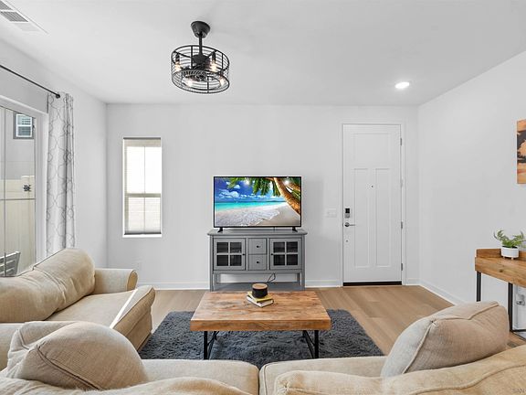 Welcome to Zutano TOWNHOME, where modern living reaches its zenith. This meticulously upgradtowned home flaunts many luxurious features tailored to enrich your lifestyle. From the hassle-free, fully paid solar panels and pre-wired for installation of a Type 2 electric vehicle charger, to the convenience of soft-close doors and drawers, every facet has been meticulously designed for your comfort and delight. Step into the heart of the home and be greeted by a chef's dream kitchen boasting stainless steel appliances and exquisite quartz countertops. Luxuriate in the opulence of the primary bath, adorned with a lavish slab countertop. The primary bedroom offers a true retreat with its spacious layout and accompanying walk-in closet, providing ample storage and organization space. Relaxation awaits in the owner's suite, complete with a tub and shower, while the backyard, like a blank canvas, invites your personal touch to create your dream outdoor space. Current landscape blueprint, has been approved by the HOA. Entertain in style with a spacious living room and high-end pendant lights over the island. Plus, WITH FURNITURE INCLUDED in the sale, moving in is a breeze, allowing you to enjoy your new home immediately. Nestled in the vibrant community of Citro, this residence offers the perfect fusion of urban convenience and natural splendor. Whether exploring scenic nature trails, unwinding in the community garden, or enjoying quality time at the pool, spa, and clubhouse, there's something for everyone.